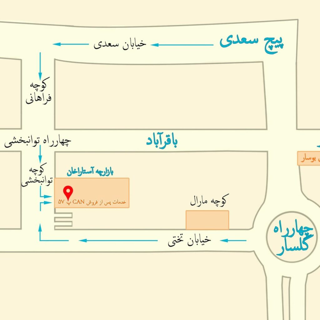 آدرس: رشت، خیابان تختی، جنب پل تختی، بازارچه آستاراخان پلاک ۵۷ و۵۹ نهری سرویس
