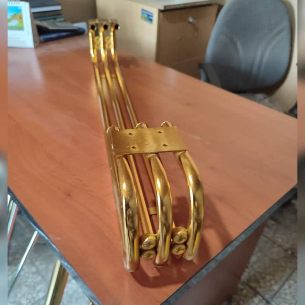 در صنایع فلزی برتر، تولید پایه سنجاقی با بهره‌گیری از دستگاه‌های دقیق و تیمی متخصص انجام می‌شود. ما انواع پایه سنجاقی دو شاخ و سه شاخ را در ابعاد مختلف، با ضخامت مناسب و پوشش رنگ کوره‌ای تولید می‌کنیم. پایه‌های سنجاقی تولیدی ما، علاوه‌بر زیبایی، دوام بسیار بالایی دارند و گزینه‌ای عالی برای ساخت میز، مبل و صندلی مدرن به شمار می‌روند. اگر به‌دنبال تولید پایه سنجاقی با کیفیت بالا و قیمت مناسب هستید، ما آماده همکاری با شما هستیم.